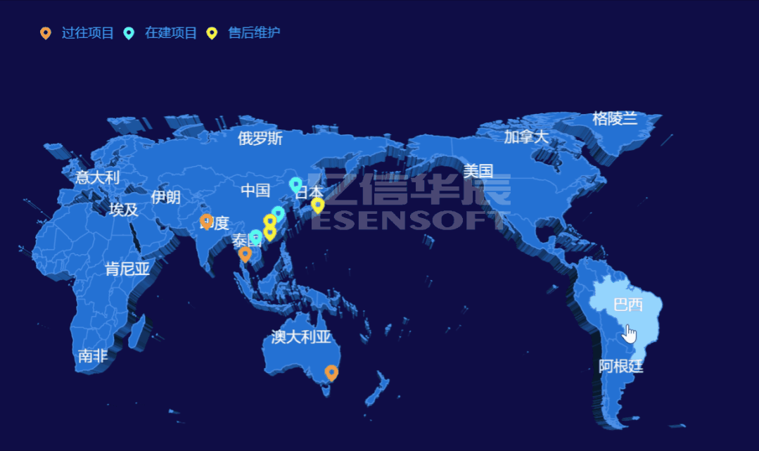 將標點和地圖相結合,以地圖為背景,將每個國家的數(shù)據(jù)通過標點的形式直觀呈現(xiàn)。